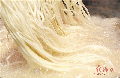 馓子好吃,做法几何?3月28日上午,我市锦祥商业街北口,在来自周口市沈丘县的李俊东的食品摊位前,记者用相机记录了馓子的油炸制作过程。