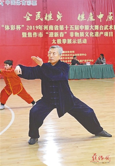 图⑤ 2月14日上午,全民健身 健康中原“体彩杯”2019年河南省第十五届中原大舞台武术展示活动暨焦作市迎新春非物质文化遗产项目太极拳展示活动在市体育中心体育馆举行。